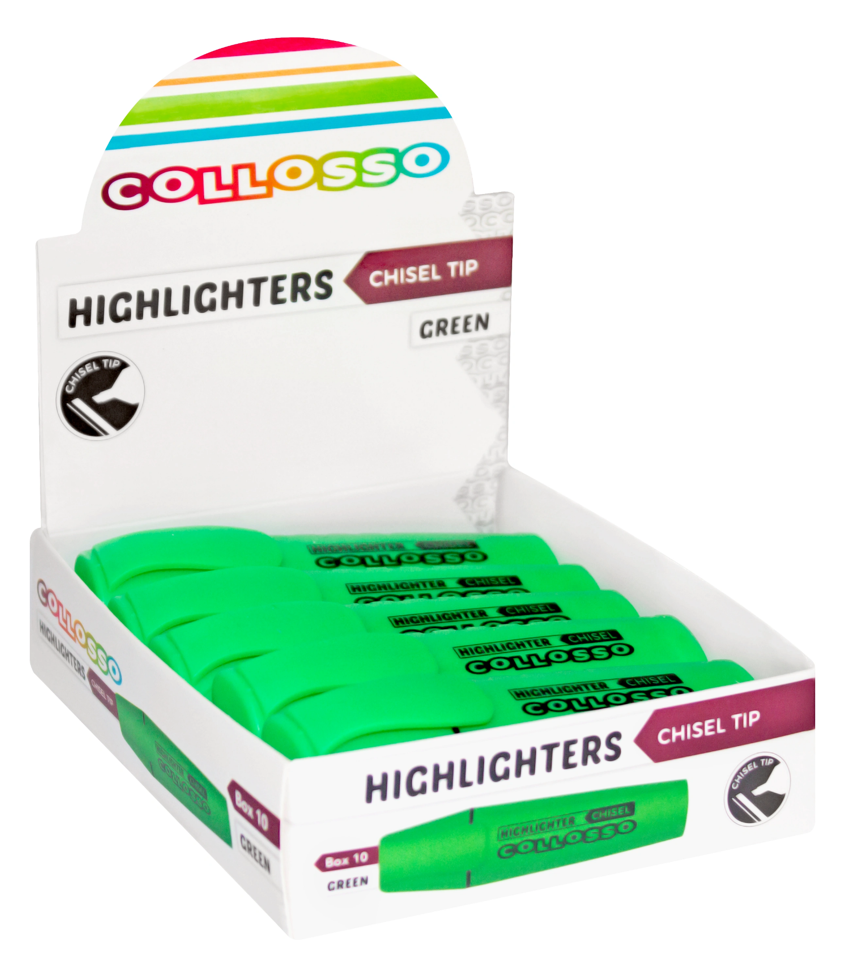 Collosso Highlighters Chisel Tip Green Box-10