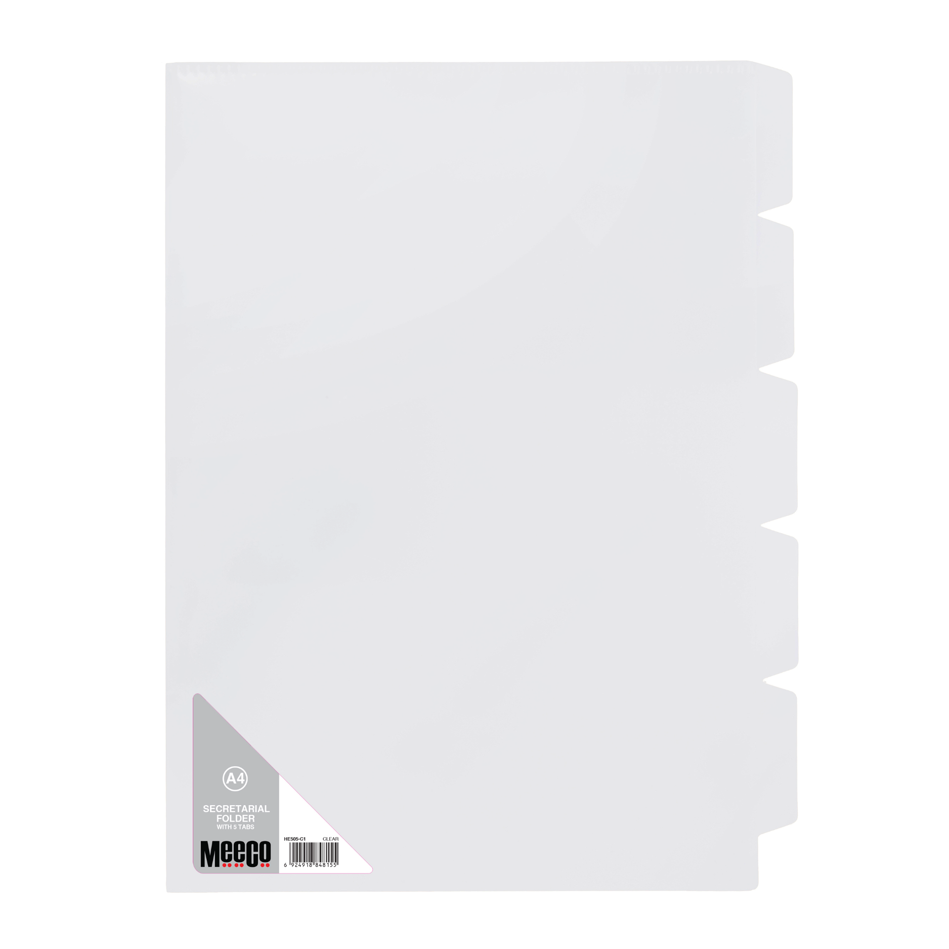 Meeco A4 5 Tab Secretarial Folder Clear